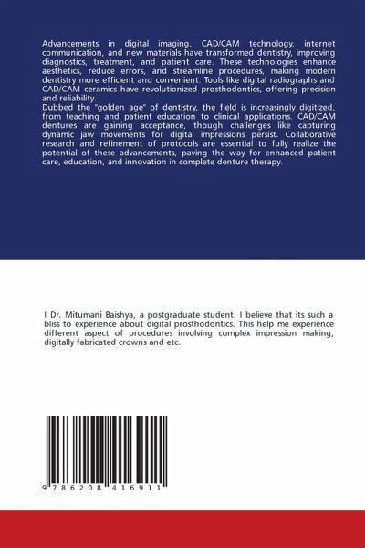 Advancements in digital imaging, CAD/CAM technology, internet communication, and new materials have transformed dentistry, improving diagnostics, treatment, and patient care. These technologies enhance aesthetics, reduce errors, and streamline procedures, making modern dentistry more efficient and convenient. Tools like digital radiographs and CAD/CAM ceramics have revolutionized prosthodontics, offering precision and reliability.Dubbed the "golden age" of dentistry, the field is increasingly digitized, from teaching and patient education to clinical applications. CAD/CAM dentures are gaining acceptance, though challenges like capturing dynamic jaw movements for digital impressions persist. Collaborative research and refinement of protocols are essential to fully realize the potential of these advancements, paving the way for enhanced patient care, education, and innovation in complete denture therapy.