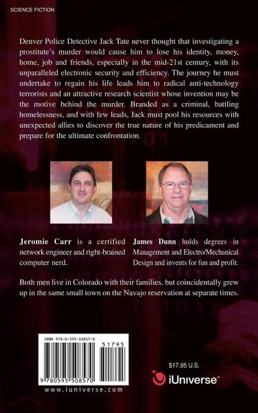 Denver Police Detective Jack Tate never thought that investigating a prostitute's murder would cause him to lose his identity, money, home, job and friends, especially in the mid-21st century, with its unparalleled electronic security and efficiency. The journey he must undertake to regain his life leads him to radical anti-technology terrorists and an attractive research scientist whose invention may be the motive behind the murder. Branded as a criminal, battling homelessness, and with few leads, Jack must pool his resources with unexpected allies to discover the true nature of his predicament and prepare for the ultimate confrontation.