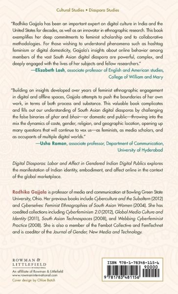 Acknowledgements Introduction Section One 1. Radhika Gajjala, Gendered Indian Digital Publics: Digital and Domestic 2. Radhika Gajjala in conversation with Sriya Chattopadhyay, Sarada Nori, Shobha S.V., and Puthiya Purayil Sneha, Dialogue Interlude: Ghar and Bahir 3. Radhika Gajjala in conversation with Shilpa Phadke, Dialogue Interlude: #WhyLoiter 4. Radhika Gajjala in conversation with Sukhnidh Kaur, Varsha Ayyar, Nithila Kanagasabai, and Divya Kandkuri, Dialogue Interlude: Centering Marginalized Feminists Section Two 5. Radhika Gajjala, Gendered Indian Digital Publics: Digital Streets 6. Radhika Gajjala in conversation with Debipreeta Rahut and Damini Kulkarni, Dialogue Interlude: Pushing on and Nuancing the Framework 7. Radhika Gajjala in conversation with Smita Vanniyar, Dialogue Interlude: The Digital Queer Question 8. Radhika Gajjala in conversation with Christina Thomas Dhanaraj, Dialogue Interlude: Reflections on Digital Mediation and on becoming and being a Dalit F