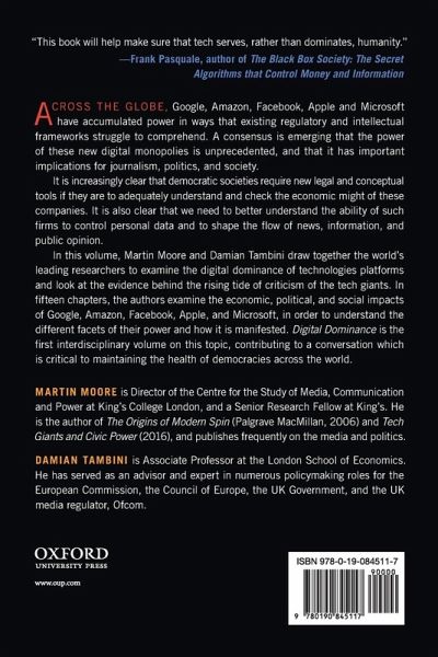 Are Google, Apple, Facebook, Amazon and Microsoft too powerful? Martin Moore and Damian Tambini draw together the world's leading researchers to examine the economic, political, and social impacts of these digital giants.