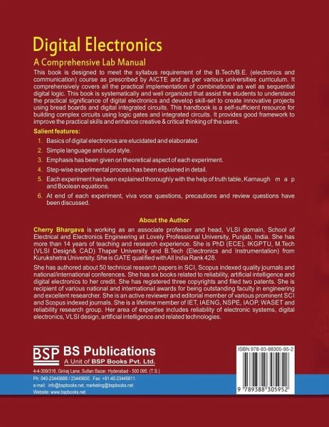 It comprehensively covers all the practical implementation of combinational as well as sequential digital logic. This book is systematically and well organized that assist the students to understand the practical significance of digital electronics and develop skill-set to create innovative projects using bread boards and digital integrated circuits. This handbook is a self-sufficient resource for building complex circuits using logic gates and integrated circuits. It provides good framework to improve the practical skills and enhance creative & critical thinking of the users. Salient features: 1. Basics of digital electronics are elucidated and elaborated. 2. Simple language and lucid style. 3. Emphasis has been given on theoretical aspect of each 4. Step-wise experimental process has been explained in detail. 5. Each experiment has been explained thoroughly with the help of truth table, Karnaugh map and Boolean equations. 6. At end of each experiment, viva voce questions, precautions and review questions have been discussed.