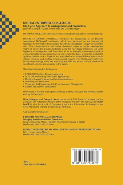 Digital Enterprise Challenges comprises the proceedings of the Eleventh International PROLAMAT conference, which was sponsored by the International Federation for Information Processing (IFIP) and held in Budapest, Hungary in November 2001. This volume contains case studies, theoretical papers and project development reports on one of the greatest challenges facing the new digital enterprises: Life Cycle Approach to Management and Production. In an increasingly environment-conscious world, manufacturing and production are seen as part of a larger picture: the product life cycle (production - use - disposal), and are looked at from three different aspects: technology, economy and ecology (environmental impact). The PROLAMAT conference focuses on technology while also embracing the other two aspects; various solutions for the different activities are presented in the papers.