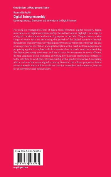 Focusing on emerging features of digital transformation, digital economy, digital innovation, and digital entrepreneurship, this edited volume highlights new aspects of digital transformation and research progress in the field. Chapters cover a wide range of topics such as: promoting the growth of the digital economy through the alertness of entrepreneurs; predicting entrepreneurial performance through the lens of entrepreneurial orientation and digital adoption with a machine learning approach; proposing a guide to emphasize the key aspects of social media analytics; examining the digital pathology ecosystem and key drivers for investment in more efficient disease diagnosis and monitoring; exploring how humane orientation contributes to the intention to use digital entrepreneurship with a gender perspective. Concluding with a review of the extant digital economy literature, the volume proposes a future research agenda which will be useful not only for researchers and academics, but also for entrepreneurs and policymakers.
