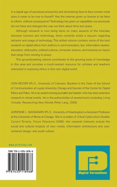 In a digital age of perceived anonymity and diminishing face-to-face contact what does it mean to be true to thyself? Has the internet given us license to be false to others, without consequence? Technology has given us capabilities we previously did not have and changed the way we think about time and space. Although research is now being done on many aspects of the interplay between humans and technology, there currently exists a vacuum regarding behavior and usage of technology. This edited volume contains some of the best research on digital ethics from authors in communication, law, information studies, education, philosophy, political science, computer science, and business on topics that range from sexting to piracy. This groundbreaking volume contributes to the growing body of knowledge in this area and provides a much-needed resource for scholars and teachers interested in exploring ethics in this new digital world.