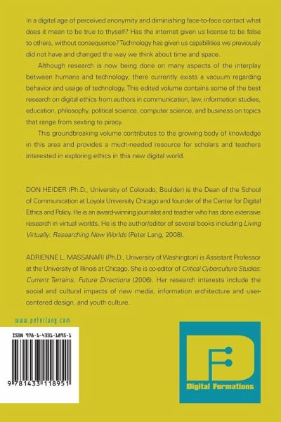 In a digital age of perceived anonymity and diminishing face-to-face contact what does it mean to be true to thyself? Has the internet given us license to be false to others, without consequence? Technology has given us capabilities we previously did not have and changed the way we think about time and space. Although research is now being done on many aspects of the interplay between humans and technology, there currently exists a vacuum regarding behavior and usage of technology. This edited volume contains some of the best research on digital ethics from authors in communication, law, information studies, education, philosophy, political science, computer science, and business on topics that range from sexting to piracy. This groundbreaking volume contributes to the growing body of knowledge in this area and provides a much-needed resource for scholars and teachers interested in exploring ethics in this new digital world.
