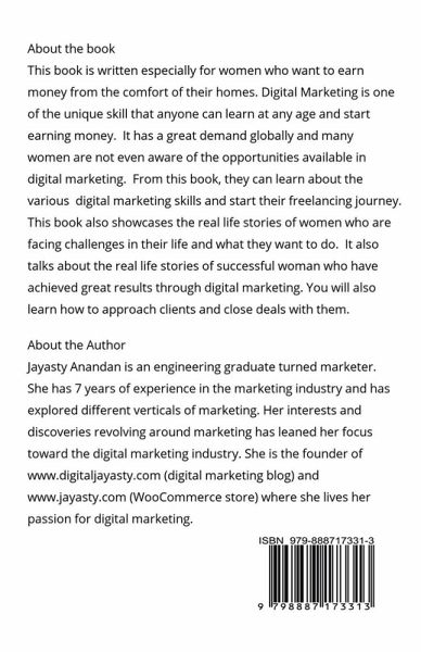 This book is written especially for women who want to earn money from the comfort of their home. Digital Marketing is one of the unique skills that anyone can learn at any age and start earning money. It has a great demand globally and many women are not even aware of the opportunities available in digital marketing. From this book, they can learn about the various digital marketing skills and start their freelancing journey. This book also showcases the real-life stories of women who are facing challenges in their life and what they want to do. It also talks about the real-life stories of successful woman who have achieved great results through digital marketing. You will also learn how to approach clients and close deals with them.