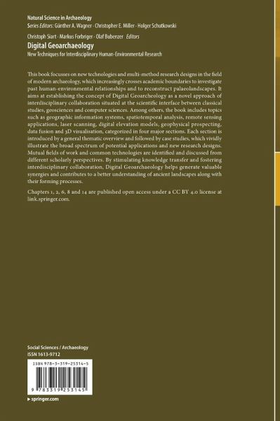 This book focusses on new technologies and multi-method research designs in the field of modern archaeology, which increasingly crosses academic boundaries to investigate past human-environmental relationships and to reconstruct palaeolandscapes. It aims at establishing the concept of Digital Geoarcheology as a novel approach of interdisciplinary collaboration situated at the scientific interface between classical studies, geosciences and computer sciences. Among others, the book includes topics such as geographic information systems, spatiotemporal analysis, remote sensing applications, laser scanning, digital elevation models, geophysical prospecting, data fusion and 3D visualisation, categorized in four major sections. Each section is introduced by a general thematic overview and followed by case studies, which vividly illustrate the broad spectrum of potential applications and new research designs. Mutual fields of work and common technologies are identified and discussed from different scholarly perspectives. By stimulating knowledge transfer and fostering interdisciplinary collaboration, Digital Geoarchaeology helps generate valuable synergies and contributes to a better understanding of ancient landscapes along with their forming processes.