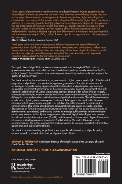 "Every aspect of government is rapidly evolving in a digital direction. Myriad opportunities for improved performance are extensive, but at the same time often overwhelming to those who lead and manage often antiquated service systems to the new standards of digital technology that citizens have come to expect. The second edition of Michael Milakovich's Digital Governance is very welcome as a necessary guide to the Information Communications Technologies (ICTs) applications that are empowering governments to fulfill their promises. Equally important, Milakovich offers powerful insights on avoiding the long-term negative effects that can accompany poor ICT implementation, resulting in declines in public trust. This volume is a necessary resource-indeed a best investment-not only for CIOs, but for all levels of public management from chief executives to line managers".