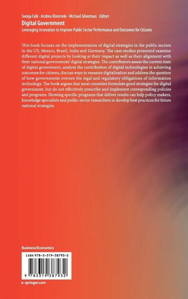 This book focuses on the implementation of digital strategies in the public sectors in the US, Mexico, Brazil, India and Germany. The case studies presented examine different digital projects by looking at their impact as well as their alignment with their national governments' digital strategies. The contributors assess the current state of digital government, analyze the contribution of digital technologies in achieving outcomes for citizens, discuss ways to measure digitalization and address the question of how governments oversee the legal and regulatory obligations of information technology. The book argues that most countries formulate good strategies for digital government, but do not effectively prescribe and implement corresponding policies and programs. Showing specific programs that deliver results can help policy makers, knowledge specialists and public-sector researchers to develop best practices for future national strategies.