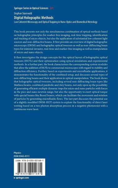 This book presents not only the simultaneous combination of optical methods based on holographic principles for marker-free imaging, real-time trapping, identification and tracking of micro objects, but also the application of substantial low coherent light sources and non-diffractive beams. It first provides an overview of digital holographic microscopy (DHM) and holographic optical tweezers as well as non-diffracting beam types for minimal-invasive, real-time and marker-free imaging as well as manipulation of micro and nano objects.