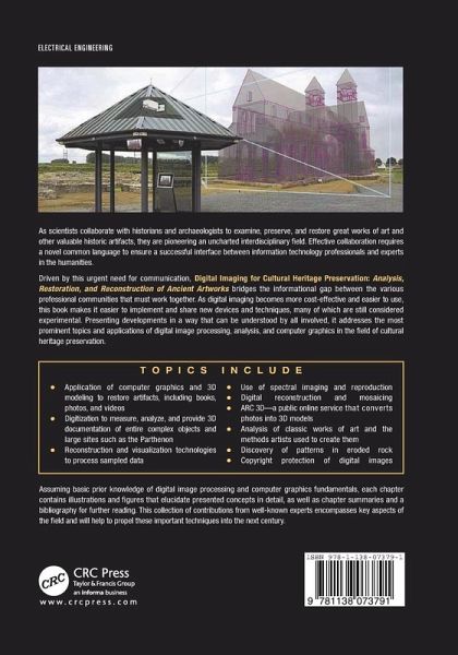 This edition presents the most prominent topics and applications of digital image processing, analysis, and computer graphics in the field of cultural heritage preservation. The text assumes prior knowledge of digital image processing and computer graphics fundamentals. Each chapter contains a table of contents, illustrations, and figures that elucidate the presented concepts in detail, as well as a chapter summary and a bibliography for further reading. Well-known experts cover a wide range of topics and related applications, including spectral imaging, automated restoration, computational reconstruction, digital reproduction, and 3D models.…mehr
