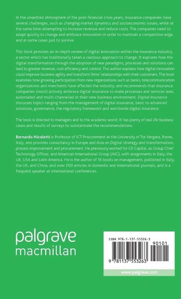 Introduction 1. Innovation in Financial Services 2. The Management of Digital Insurance 3. The Digital Insurance Basic Systems 4. Advanced Solutions 5. Governance 6. Regulatory Framework 7. Digital Insurance throughout the World 8. The Future Conclusions