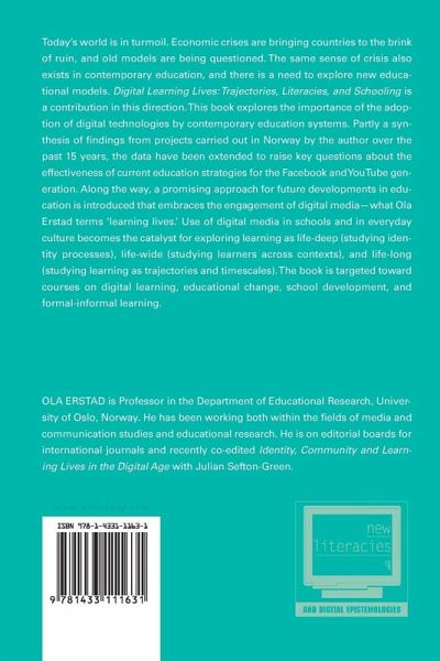 Today's world is in turmoil. Economic crises are bringing countries to the brink of ruin, and old models are being questioned. The same sense of crisis also exists in contemporary education, and there is a need to explore new educational models. Digital Learning Lives: Trajectories, Literacies, and Schooling is a contribution in this direction. This book explores the importance of the adoption of digital technologies by contemporary education systems. Partly a synthesis of findings from projects carried out in Norway by the author over the past 15 years, the data have been extended to raise key questions about the effectiveness of current education strategies for the Facebook and YouTube generation. Along the way, a promising approach for future developments in education is introduced that embraces the engagement of digital media - what Ola Erstad terms 'learning lives'. Use of digital media in schools and in everyday culture becomes the catalyst for exploring learning as life-deep (studying identity processes), life-wide (studying learners across contexts), and life-long (studying learning as trajectories and timescales). The book is targeted toward courses on digital learning, educational change, school development, and formal-informal learning.