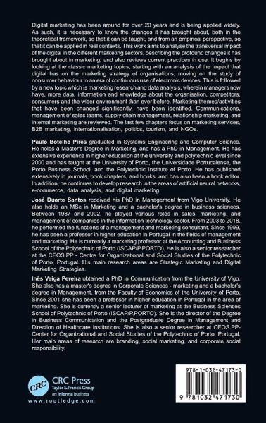 Paulo Botelho Pires graduated in Systems Engineering and Computer Science. He holds a Master's Degree in Marketing, and has a PhD in Management. He has extensive experience in higher education at the university and polytechnic level since 2000 and has taught at the University of Porto, the Universidade Portucalense, the Porto Business School, and the Polytechnic Institute of Porto. He has published extensively in journals, book chapters, and books, and has also been a book editor. In addition, he continues to develop research in the areas of artificial neural networks, e-commerce, data analysis, and digital marketing. José Duarte da Rocha Santos received his PhD in Management from Vigo University. He also holds an MSc in Marketing and a bachelor's degree in business sciences. Between 1987 and 2002, he played various roles in sales, marketing, and management of companies in the information technology sector. From 2003 to 2018, he performed the functions of a management and marketing consultant. Since 1999, he has been a professor in higher education in Portugal in the fields of management and marketing. He is currently a marketing professor at the Accounting and Business School of the Polytechnic of Porto (ISCAP/P.PORTO). He is also a senior researcher at the CEOS.PP - Centre for Organizational and Social Studies of the Polytechnic of Porto, Portugal. His main research areas are Strategic Marketing and Digital Marketing Strategies. Inês Veiga Pereira obtained a PhD in Communication from the University of Vigo. She also has a master's degree in Corporate Sciences - marketing and a bachelor's degree in Management, from the Faculty of Economics of the University of Porto. Since 2001 she has been a professor in higher education in Portugal in the area of marketing. She is currently a senior lecturer of marketing at the Business Sciences School of Polytechnic of Porto (ISCAP/P.PORTO). She is the director of the Degree in Business Communication and the Postgraduate Degree in Management and Direction of Healthcare Institutions. She is also a senior researcher at CEOS.PP-Center for Organizational and Social Studies of the Polytechnic of Porto, Portugal. Her main areas of research are branding, social marketing, and corporate social responsibility.