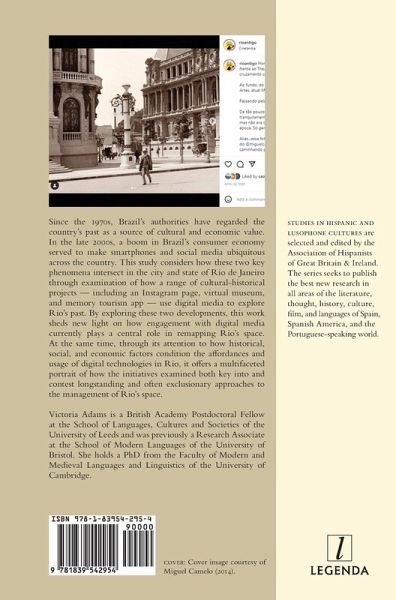 Since the 1970s, Brazil's authorities have regarded the country's past as a source of cultural and economic value. In the late 2000s, a boom in Brazil's consumer economy served to make smartphones and social media ubiquitous across the country. This study considers how these two key phenomena intersect in the city and state of Rio de Janeiro through examination of how a range of cultural-historical projects - including an Instagram page, virtual museum, and memory tourism app - use digital media to explore Rio's past. By exploring these two developments, this work sheds new light on how engagement with digital media currently plays a central role in remapping Rio's space. At the same time, through its attention to how historical, social, and economic factors condition the affordances and usage of digital technologies in Rio, it offers a multifaceted portrait of how the initiatives examined both key into and contest longstanding and often exclusionary approaches to the management of Rio's space. Victoria Adams is a British Academy Postdoctoral Fellow at the School of Languages, Cultures and Societies of the University of Leeds and was previously a Research Associate at the School of Modern Languages of the University of Bristol. She holds a PhD from the Faculty of Modern and Medieval Languages and Linguistics of the University of Cambridge.