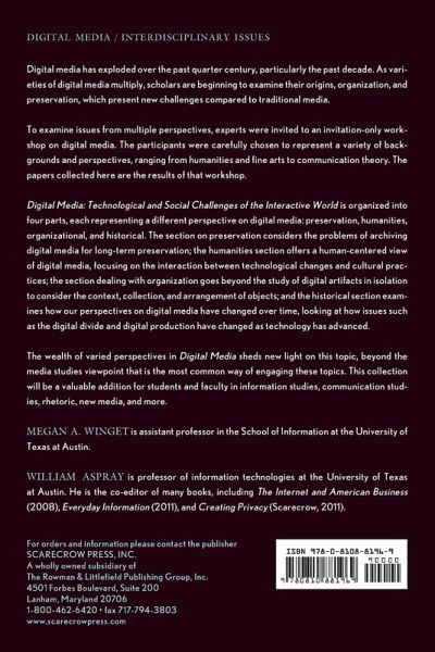There has been an explosion in the creation and use of digital media over the past quarter century and in particular over the past decade. This book carefully examines multiple aspects of digital media from the different perspectives of some of the top scholars in the field. Organized into four parts, Digital Media looks at the preservation of digital media, the interaction between technological changes and cultural practices, the organization of digital media, and its history. The wealth of varied perspectives collected together in this volume provides new light on the topic of digital media.