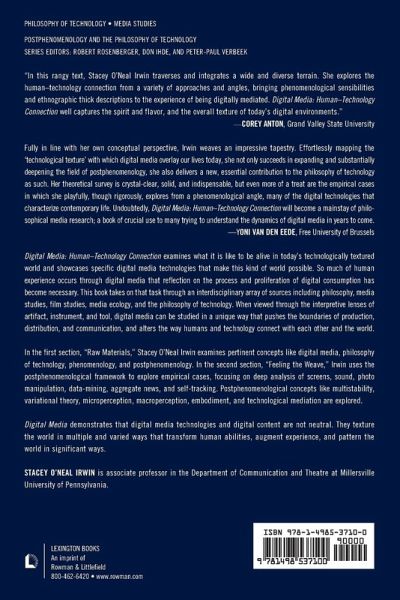 Digital Media: Human–Technology Connection examines the technologically textured world through case studies that illustrate the way humans and technology connect with each other and the world. An interdisciplinary array of sources from philosophy, postphenomenology, philosophy of technology, media studies, media ecology, and film studies shows that digital media and its content are not neutral. This technology textures the world in multiple and varied ways that transform human abilities, augment experience, and pattern the world.