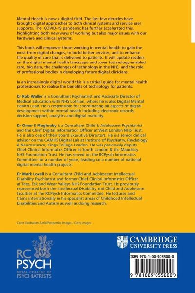 Introduction Rob Waller, Mark Lovell and Omer Moghraby; 1. Working with IT systems: the benefits and the challenges Fionnbar Lenihan; 2. Technology enabled care Donald Macintyre; 3. Note keeping in the digital age: making good use of electronic records systems Hashim Reza; 4. Big Data: the new epidemiology Lucy Stirland, Tom Russ and Tom Foley; 5. Artificial intelligence: why we need it and why we need to be cautious Dr Lesa S Wright; 6. Digital clinicians: growing a different type of healthcare professional James Reed and Omer Moghraby; 7. Global Telepsychiatry: the changing face of psychiatric practice Peter Yellowlees; 8. The integration agenda: getting everything joined up Rob Waller and James Reed; 9. Digital wellbeing: using technology well Paul Bradley and Toral Thomas; 10. Conclusion: the future of mental health Rob Waller, Mark Lovell and Omer Moghraby; Appendix.