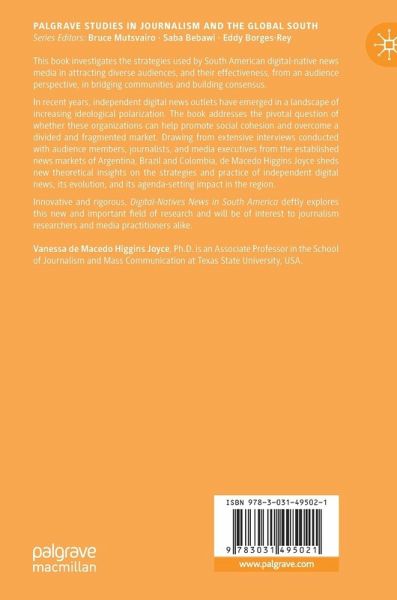 In recent years, independent digital news outlets have emerged in a landscape of increasing ideological polarization. The book addresses the pivotal question of whether these organizations can help promote social cohesion and overcome a divided and fragmented market. Drawing from extensive interviews conducted with audience members, journalists, and media executives from the established news markets of Argentina, Brazil and Colombia, de Macedo Higgins Joyce sheds new theoretical insights on the strategies and practice of independent digital news, its evolution, and its agenda-setting impact in the region.