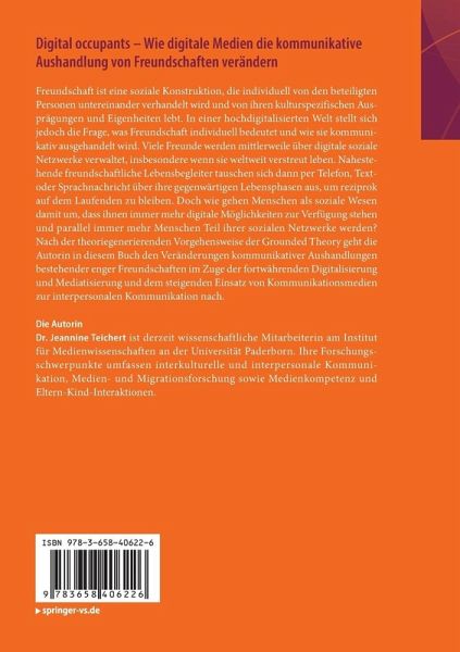 Freundschaft ist eine soziale Konstruktion, die individuell von den beteiligten Personen untereinander verhandelt wird und von ihren kulturspezifischen Ausprägungen und Eigenheiten lebt. In einer hochdigitalisierten Welt stellt sich jedoch die Frage, was Freundschaft individuell bedeutet und wie sie kommunikativ ausgehandelt wird. Viele Freunde werden mittlerweile über digitale soziale Netzwerke verwaltet, insbesondere wenn sie weltweit verstreut leben. Nahestehende freundschaftliche Lebensbegleiter tauschen sich dann per Telefon, Text- oder Sprachnachricht über ihre gegenwärtigen Lebensphasen aus, um reziprok auf dem Laufenden zu bleiben. Doch wie gehen Menschen als soziale Wesen damit um, dass ihnen immer mehr digitale Möglichkeiten zur Verfügung stehen und parallel immer mehr Menschen Teil ihrer sozialen Netzwerke werden? Nach der theoriegenerierenden Vorgehensweise der Grounded Theory geht die Autorin in diesem Buch den Veränderungen kommunikativer Aushandlungen bestehender enger Freundschaften im Zuge der fortwährenden Digitalisierung und Mediatisierung und dem steigenden Einsatz von Kommunikationsmedien zur interpersonalen Kommunikation nach.