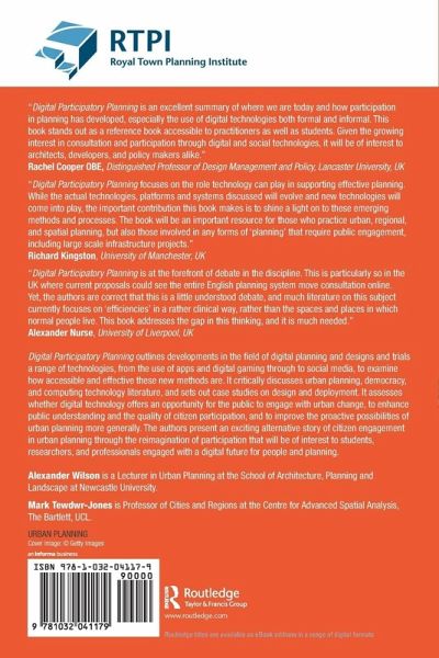 "Digital Participatory Planning is at the forefront of debate in the discipline. This is particularly so in the UK where current proposals could see the entire English planning system move consultation online. Yet, the authors are correct that this is a little understood debate, and much literature on this subject currently focuses on 'efficiencies' in a rather clinical way, rather than the spaces and places in which normal people live. This book addresses the gap in this thinking, and it is much needed." Alexander Nurse, University of Liverpool, UK