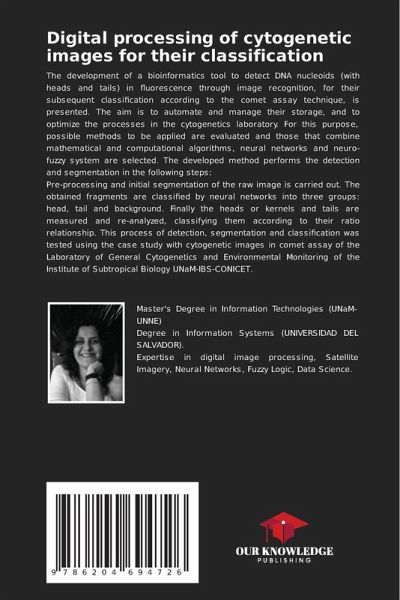 The development of a bioinformatics tool to detect DNA nucleoids (with heads and tails) in fluorescence through image recognition, for their subsequent classification according to the comet assay technique, is presented. The aim is to automate and manage their storage, and to optimize the processes in the cytogenetics laboratory. For this purpose, possible methods to be applied are evaluated and those that combine mathematical and computational algorithms, neural networks and neuro-fuzzy system are selected. The developed method performs the detection and segmentation in the following steps:Pre-processing and initial segmentation of the raw image is carried out. The obtained fragments are classified by neural networks into three groups: head, tail and background. Finally the heads or kernels and tails are measured and re-analyzed, classifying them according to their ratio relationship. This process of detection, segmentation and classification was tested using the case study withcytogenetic images in comet assay of the Laboratory of General Cytogenetics and Environmental Monitoring of the Institute of Subtropical Biology UNaM-IBS-CONICET.
