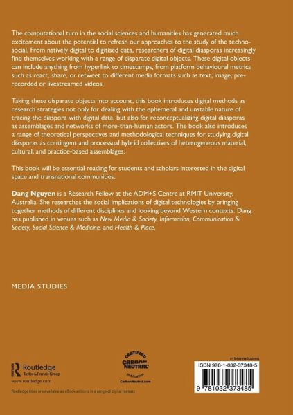 Taking these disparate objects into account, this book introduces digital methods as research strategies not only for dealing with the ephemeral and unstable nature of tracing the diaspora with digital data, but also for reconceptualizing digital diasporas as assemblages and networks of more-than-human actors. The book also introduces a range of theoretical perspectives and methodological techniques to studying digital diasporas as contingent and processual hybrid collectives of heterogeneous material, cultural, and practice-based assemblages.