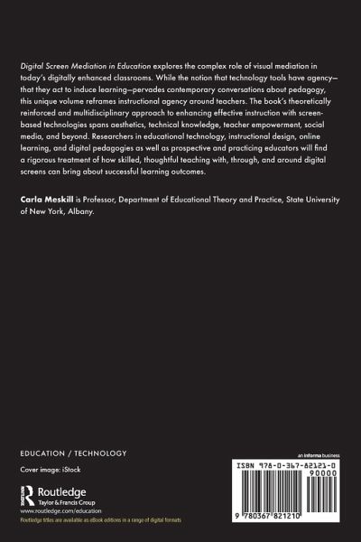 Digital Screen Mediation in Education explores the complex role of visual mediation in today's digitally enhanced classrooms. While the notion that technology tools have agency-that they act to induce learning-pervades contemporary conversations about pedagogy, this unique volume reframes instructional agency around teachers. The book's theoretically reinforced and multidisciplinary approach to enhancing effective instruction with screen-based technologies spans aesthetics, technical knowledge, teacher empowerment, social media, and beyond. Researchers in educational technology, instructional design, online learning, and digital pedagogies as well as prospective and practicing educators will find a rigorous treatment of how skilled, thoughtful teaching with, through, and around digital screens can bring about successful learning outcomes.