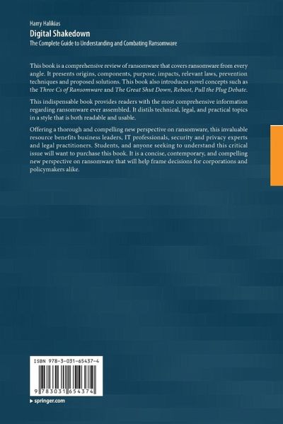 This book is a comprehensive review of ransomware that covers ransomware from every angle. It presents origins, components, purpose, impacts, relevant laws, prevention techniques and proposed solutions. This book also introduces novel concepts such as the Three Cs of Ransomware and The Great Shut Down, Reboot, Pull the Plug Debate.