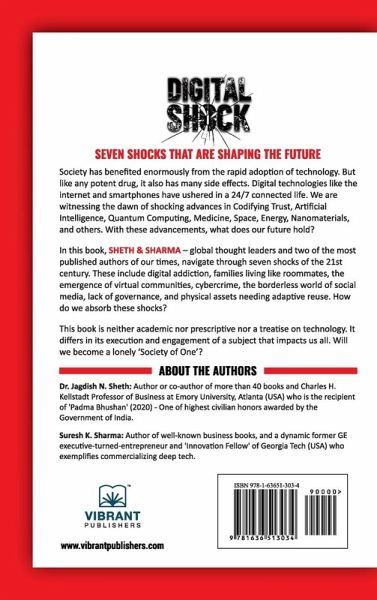 In a world where technology shapes every aspect of our lives, "Digital Shock: Seven Shocks That Are Shaping the Future" delves into the profound disruptions we face today-and those still to come. Digital technologies like the Internet and social media have thrust us into unforeseen and new ways of life. We are also witnessing rapid advancements in fields such as Codifying Trust, Artificial Intelligence, Quantum Computing, and others. In this digital age, technology has transformed mobility and agriculture, but it has also led to resource depletion and health issues. How did we manage these shifts in the past, and how will we cope with even greater changes in the present and future? Will we survive in the current world of the Internet, mobile phones, eCommerce, and social media? Or, are we in for a rude shock? Will we adapt or become a lonely 'Society of One'? "Digital Shock," written by prominent global thought leaders and some of the most published authors of our time, identifies seven shocks we are all experiencing in the 21st century. These include coping with digital addiction, families living like roommates, the emergence of virtual communities, the borderless world of social media, lack of governance, and the need to adaptively reuse physical assets like factories and malls. Contrary to doomsday thinkers, we believe humanity will not only absorb each shock but also consider it as an opportunity for more discoveries and innovations. We foresee that with our cognitive capabilities, and some proactive planning by each individual and society, we will once again embrace the future not only to survive but also to thrive. Hence, this book is neither academic nor prescriptive, nor is it a treatise on technology. It differs in its execution and engagement of this critical subject that impacts all our lives.