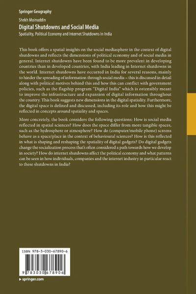 More concretely,the book considers the following questions: How is social media reflected in spatial sciences? How does the space differ from more tangible spaces, such as the hydrosphere or atmosphere? How do (computer/mobile phone) screens behave as a space/place in the context of behavioural sciences? How is this reflected in what is shaping and reshaping the spatiality of digital gadgets? Do digital gadgets change the socialization process that's often considered a path towards how we develop in society? How do internet shutdowns affect the political economy and what patterns can be seen in how individuals, companies and the internet industry in particular react to these shutdowns in India?