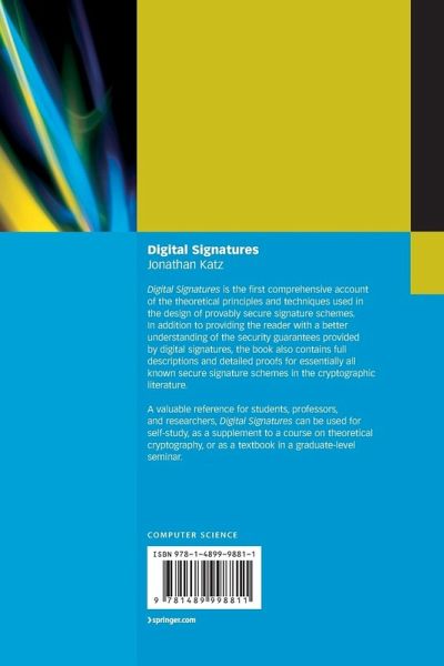 "This book contains a sound treatment of digital signature schemes. The intended audience is in first place '...a beginning graduate student who is potentially interested in doing research in the field of cryptography.' The book does not only provide a survey of most of the current signature schemes but demonstrate clear statements about the achievable security in the sense of provable security. This makes it valuable also for the advanced researcher." (Ulrich Tipp, Zentralblatt MATH, Vol. 1202, 2011)