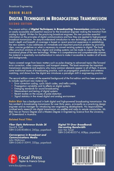 Digital Techniques in Broadcasting Transmission 2E is a practical guide for the broadcast engineer making the transition from analog to digital. Emphasis is on digital communication at the level of the practicing broadcast engineer and the application of digital principles to high-powered broadcast transmission. Unlike texts heavier in mathematics and technical detail, this book provides the most basic, must-have information in a comprehendible manner. Digital Techniques in Broadcasting Transmission 2E has been revised to include recent developments, including new information on:·Cyclic Block Codes·New satellite systems and standards·New transmission system standards·Pulse distortion·Recent studies in the mixed analog and digital environment.Engineers and managers involved in technical transmission issues will find this an essential resource to simplify the transition from analog to digital and will not want to be without this book