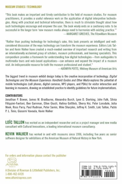 Loïc Tallon has worked as an independent researcher and as a project manager and new media consultant with Cultural Innovations, a leading international museum consultancy. Kevin Walker has worked in and with museums since 1996, including five years as senior software designer for exhibitions at the American Museum of Natural History in New York.