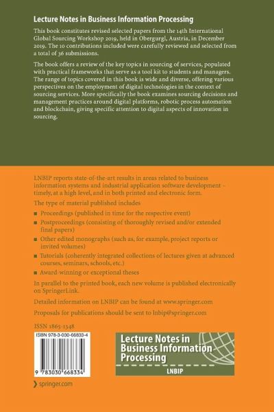 The book offers a review of the key topics in sourcing of services, populated with practical frameworks that serve as a tool kit to students and managers. The range of topics covered in this book is wide and diverse, offering various perspectives on the employment of digital technologies in the context of sourcing services. More specifically the book examines sourcing decisions and management practices around digital platforms, robotic process automation and blockchain, giving specific attention to digital aspects of innovation in sourcing.