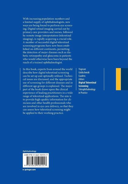 The Current State of the Art and Future Trends: A Literature Review of Tele-ophthalmology Projects from Around the Globe.- Diabetic retinopathy screening practice guides.- Stereopsis and Teleophthalmology.- Video Imaging Technology: A Novel Method for Diabetic Retinopathy Screening.- Automated Image Analysis and Application of Diagnostic algorithms in an ocular telehealth network.- Computer aided detection of diabetic retinopathy progression.- Tele-glaucoma: Experiences and Perspectives.- Retinal Vascular imaging for cardiovascular risk-prediction.- Retinal Screening for Early Detection of Alzheimer's disease.- Screening the Retina for heart disease / Stroke. The Telemedicine Applications and Global Experience: Tele-retinal imaging in Adults: Diabetic Retinopathy Assessment in the Primary care environment: Lessons learned from 100,000 patient encounters.- The systematic DR screening in England for 2 million people with diabetes.- Telescreening for diabetic retinopathy in India.- First experience with tele-ophthalmology in rural Nepal.- Economics of Screening for diabetic retinopathy using telemedicine in California's Safety Net.- Diabetic Retinopathy Screening with Non-Mydriatic Retinopathy by General practitioners.Paediatric applications: Telemedicine for Retinopathy of prematurity diagnosis.- Retinal examination in premature babies.- Retinoblastoma Management: Connecting Institutions with Telemedicine.- Conclusion.- Appendix: American Telemedicine Association's Telehealth Practice Recommendations for Diabetic Retinopathy.