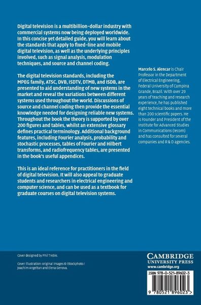 Digital television is a multibillion-dollar industry with commercial systems now being deployed worldwide. In this concise yet detailed guide, you will learn about the standards that apply to fixed-line and mobile digital television, as well as the underlying principles involved. The digital television standards are presented to aid understanding of new systems in the market and reveal the variations between different systems used throughout the world. Discussions of source and channel coding then provide the essential knowledge needed for designing reliable new systems. Throughout the book the theory is supported by over 200 figures and tables, whilst an extensive glossary defines practical terminology. This is an ideal reference for practitioners in the field of digital television. It will also appeal to graduate students and researchers in electrical engineering and computer science, and can be used as a textbook for graduate courses on digital television systems.