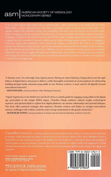 In an era when digital relationships define social landscapes, Digital Togetherness in the Middle East and North Africa offers a unique exploration into how these technologies impact ministries with young adults in the regions. Authored by ChanMin Chung, this compelling work delves into the effective use of social media, instant messaging, and video communication platforms to forge meaningful relationships and promote spiritual dialogue. Focused on the Christian work in the MENA region, Chung's research provides practical digital strategies beyond conventional outreach, addressing the unique challenges gospel workers face in engaging a tech-savvy young adult population amid cultural and religious complexities. This book is an invaluable resource for Christian workers, leaders, and anyone interested in the powerful role of digital media in enhancing intercultural and interfaith interactions. Whether you are a practitioner on the ground or a strategist behind the scenes, these insights will equip you to build deeper, more resilient connections in your ministries. Join Chung on a journey of digital discovery and spiritual outreach that promises to transform your approach to ministries in the digital age.