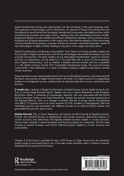 Dr Geetika Jain is Lecturer in Digital Transformation at Keele Business School, Keele University, UK. Prior to joining Keele Business School, Geetika Jain was a Senior Researcher at the European Blockchain Center, IT University of Copenhagen, Denmark. She was associated with the Danish Skylab Innovation Center as an Expert Researcher. Geetika has gained corporate experience at GE (General Electric), USA, as a strategic consultant. She has a proven record of publication with ABS¿3*/3 journals and is an active reviewer of FT50, Academy of Management, ABS and WoS¿listed journals and associated with different journals as an editorial board member and guest¿edited the journal's special issue. Malahat Ghoreishi, DSc, is Senior Researcher and Lecturer at LAB University of Applied Sciences, Finland. Her research focuses on digitalization and circular economy, datädriven solutions in circular economy and datädriven and digitally enabled business models in circular economy. She has been involved in several European and Horizon projects as a researcher. She has been involved in several European and Finnish National projects related to circular economy and sustainability.