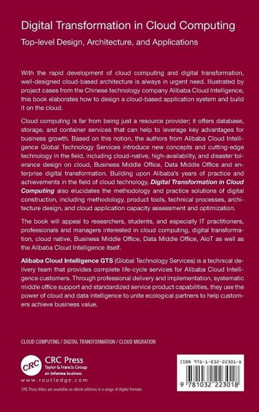 With the rapid development of cloud computing and digital transformation, well-designed cloud-based architecture is always in urgent need. Illustrated by project cases from the Chinese technology company Alibaba, this book elaborates how to design a cloud-based application system and build them on the cloud. Cloud computing is far from being just a resource provider; it offers database, storage and container services that can help to leverage key advantages for business growth. Based on this notion, authors from the Alibaba Cloud Global Technology Services introduce new concepts and cutting-edge technology in the field, including cloud-native, high-availability and disaster tolerance design on cloud, business middle office, data middle office, and enterprise digital transformation. Resting upon Alibaba's years of practice and achievements in the field of cloud technology, the volume also elucidates the methodology and practice solutions of digital construction, including methodology, product tools, technical processes, architecture design, cloud application capacity assessment and optimization, etc. The book will appeal to researchers, students, and especially IT practitioners, professionals, and managers interested in cloud computing, digital transformation, cloud migration, business middle office, data middle office, as well as the Alibaba Cloud itself.
