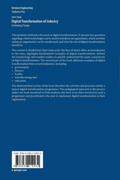 The content is divided into three main parts, the first of which offers an introduction to the topic, highlights fundamental examples of digital transformation, defines the terminology, and enables readers to quickly understand the main components of digital transformation. The second part of the book addresses examples of digital transformation from several industries, including: