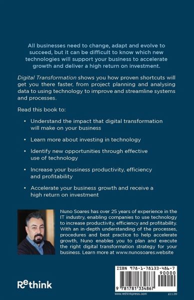 All businesses need to change, adapt and evolve to succeed, but it can be difficult to know which new technologies will support your business to accelerate growth and deliver a high return on investment. Digital Transformation shows you how proven shortcuts will get you there faster, from project planning and analysing data to using technology to improve and streamline systems and processes. Read this book to: ¿ Understand the impact that digital transformation will make on your business ¿ Learn more about investing in technology ¿ Identify new opportunities through effective use of technology ¿ Increase your business productivity, efficiency and profitability ¿ Accelerate your business growth and receive a high return on investment