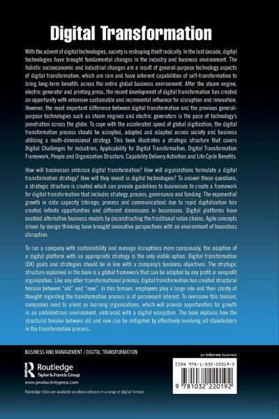 With the advent of digital technologies, society is reshaping itself radically. In the last decade, digital technologies have brought fundamental changes in the industry and business environment. The holistic socioeconomic and industrial changes are a result of general-purpose technology aspects of digital transformation, which are rare and have inherent capabilities of self-transformation to bring long-term benefits across the entire global business environment. After the steam engine, electric generator and printing press, the recent development of digital transformation has created an opportunity with extensive sustainable and incremental influence for disruption and renovation. However, the most important difference between digital transformation and the previous general-purpose technologies such as steam engines and electric generators is the pace of technology's penetration across the globe. To cope with the accelerated speed of global digitization, the digital transformation process should be accepted, adopted and adapted across society and business utilizing a multi-dimensional strategy. This book illustrates a strategic structure that covers Digital Challenges for Industries, Applicability for Digital Transformation, Digital Transformation Framework, People and Organization Structure, Capability Delivery Activities and Life Cycle Benefits.