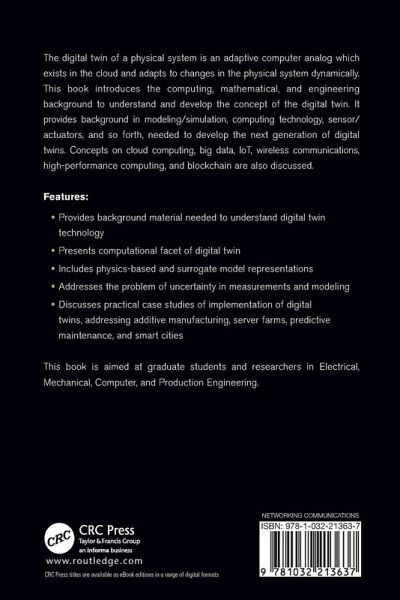The digital twin of a physical system is an adaptive computer analog which exists in the cloud and adapts to changes in the physical system dynamically. This book introduces the computing, mathematical, and engineering background to understand and develop the concept of the digital twin. It provides background in modeling/simulation, computing technology, sensor/actuators, and so forth, needed to develop the next generation of digital twins. Concepts on cloud computing, big data, IoT, wireless communications, high-performance computing, and blockchain are also discussed.