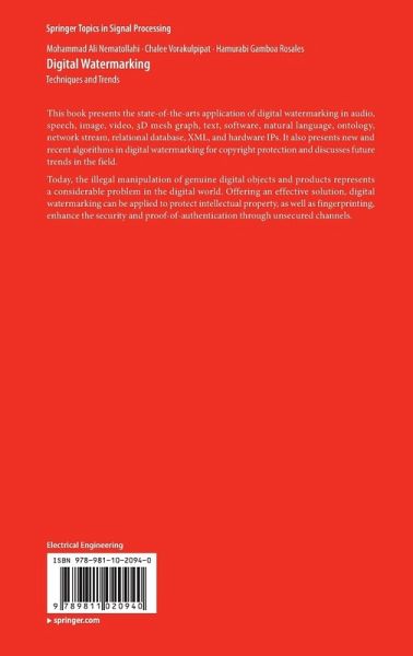 "This book introduces many watermarking techniques, applied to a wide range of media, and discusses the tradeoffs between different techniques. ... it will serve as a great introductory resource for anyone (both researchers and practitioners) who is a beginner in this field and wants to familiarize themselves with the available techniques. Each chapter has an extensive references section that can then be used as a guide for more in-depth study." (Andrew Kalafut, Computing Reviews, January, 2017)