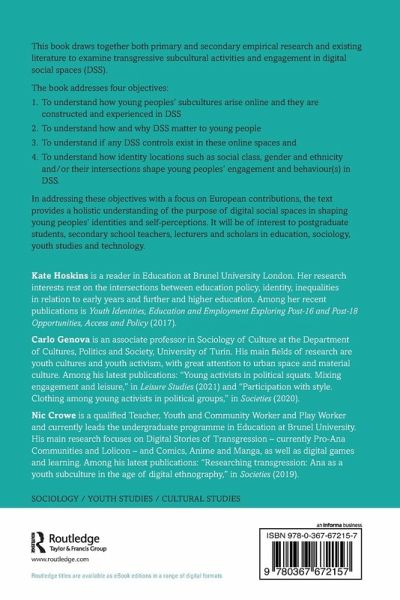 This book draws together both primary and secondary empirical research and existing literature to examine transgressive subcultural activities and engagement in digital social spaces (DSS).