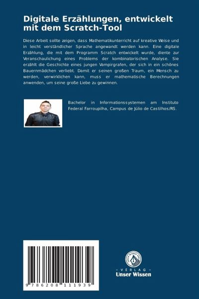 Diese Arbeit sollte zeigen, dass Mathematikunterricht auf kreative Weise und in leicht verständlicher Sprache angewandt werden kann. Eine digitale Erzählung, die mit dem Programm Scratch entwickelt wurde, diente zur Veranschaulichung eines Problems der kombinatorischen Analyse. Sie erzählt die Geschichte eines jungen Vampirgrafen, der sich in ein schönes Bauernmädchen verliebt. Damit er seinen großen Traum, ein Mensch zu werden, verwirklichen kann, muss er mathematische Berechnungen anwenden, um seine große Liebe zu gewinnen.