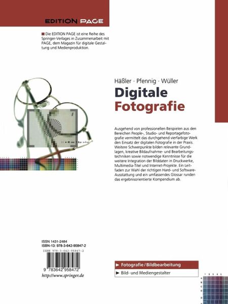 Ausgehend von professionellen Beispielen aus den Bereichen People-, Studio- und Reportagefotografie vermittelt das durchgehend vierfarbige Werk den Einsatz der digitalen Fotografie in der Praxis. Weitere Schwerpunkte bilden relevante Grundlagen, kreative Bildaufnahme- und Bearbeitungstechniken sowie notwendige Kenntnisse für die weitere Integration der Bilddaten in Druckwerke, Multimedia-Titel und Internet-Projekte. Ein Leitfaden zur Wahl der richtigen Hard- und Software-Ausstattung und ein umfassendes Glossar runden das ergebnisorientierte Kompendium ab.