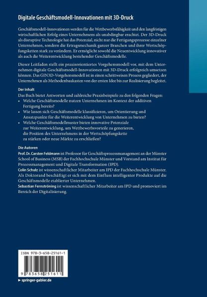 Dieser Leitfaden stellt ein praxisorientiertes Vorgehensmodell vor, mit dem Unternehmen digitale Geschäftsmodell-Innovationen mit 3D-Druck erfolgreich umsetzen können. Das GIN3D-Vorgehensmodell ist in einen schrittweisen Prozess gegliedert, der Unternehmen als Methodenbaukasten von der ersten Idee bis zur Realisierung begleitet.