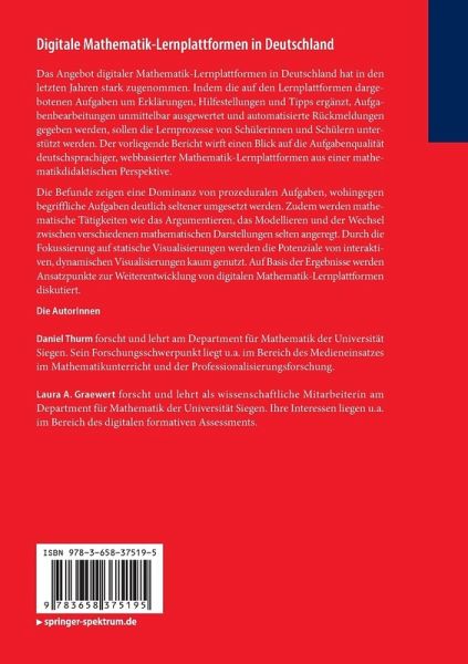 Das Angebot digitaler Mathematik-Lernplattformen in Deutschland hat in den letzten Jahren stark zugenommen. Indem die auf den Lernplattformen dargebotenen Aufgaben um Erklärungen, Hilfestellungen und Tipps ergänzt, Aufgabenbearbeitungen unmittelbar ausgewertet und automatisierte Rückmeldungen gegeben werden, sollen die Lernprozesse von Schülerinnen und Schülern unterstützt werden. Der vorliegende Bericht wirft einen Blick auf die Aufgabenqualität deutschsprachiger, webbasierter Mathematik-Lernplattformen aus einer mathematikdidaktischen Perspektive.Die Befunde zeigen eine Dominanz von prozeduralen Aufgaben, wohingegen begriffliche Aufgaben deutlich seltener umgesetzt werden. Zudem werden mathematische Tätigkeiten wie das Argumentieren, das Modellieren und der Wechsel zwischen verschiedenen mathematischen Darstellungen selten angeregt. Durch die Fokussierung auf statische Visualisierungen werden die Potenziale von interaktiven, dynamischen Visualisierungen kaum genutzt.Auf Basis der Ergebnisse werden Ansatzpunkte zur Weiterentwicklung von digitalen Mathematik-Lernplattformen diskutiert.